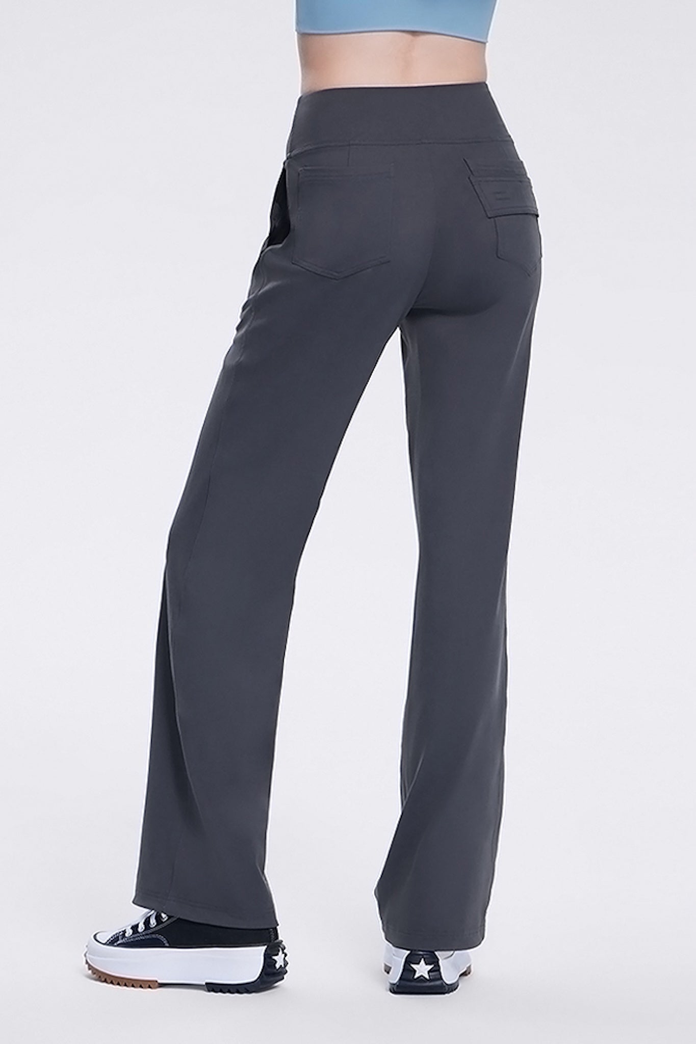 - Mid-waisted straight-leg pants